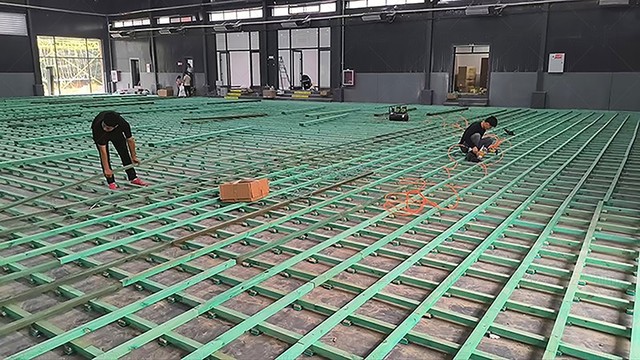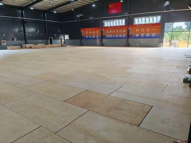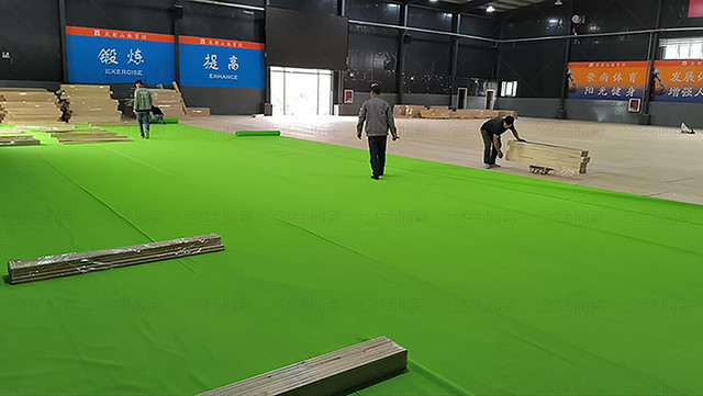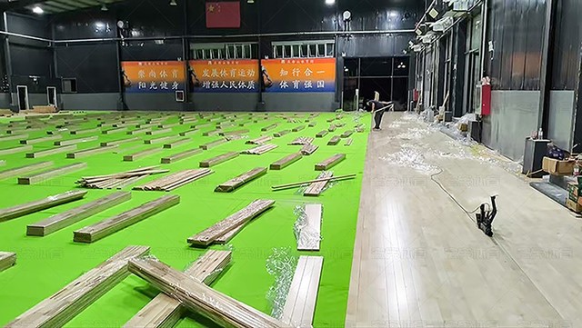 保定唐縣慶都山籃球館木地板鋪裝中